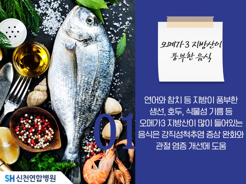 지금까지 강직성 척추염 완치 관련 치료법은 없지만 증상을 완화하는 방법으로 꾸준히 관리하면 생활의 불편을 줄이고 정상적인 생활을 하는 데 도움이 됩니다. 척추 병변이 특징인 강직성 척추염은 만성 관절염의 일종으로 염증에 의해 딱딱해지거나 굳어지는 증상이 주로 나타납니다. 오늘은 이를 회복하는 강직성 척추염에 좋은 음식을 함께 소개해 드리겠습니다.