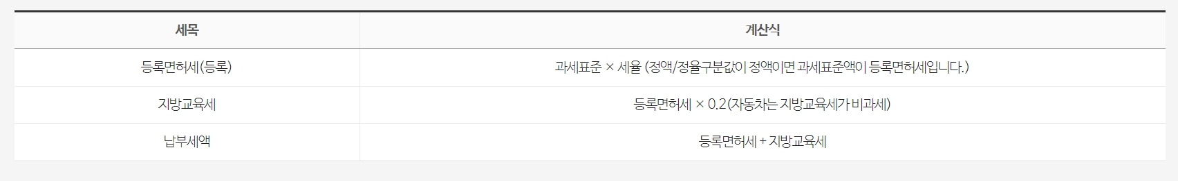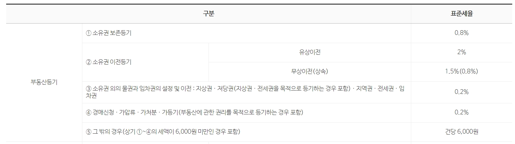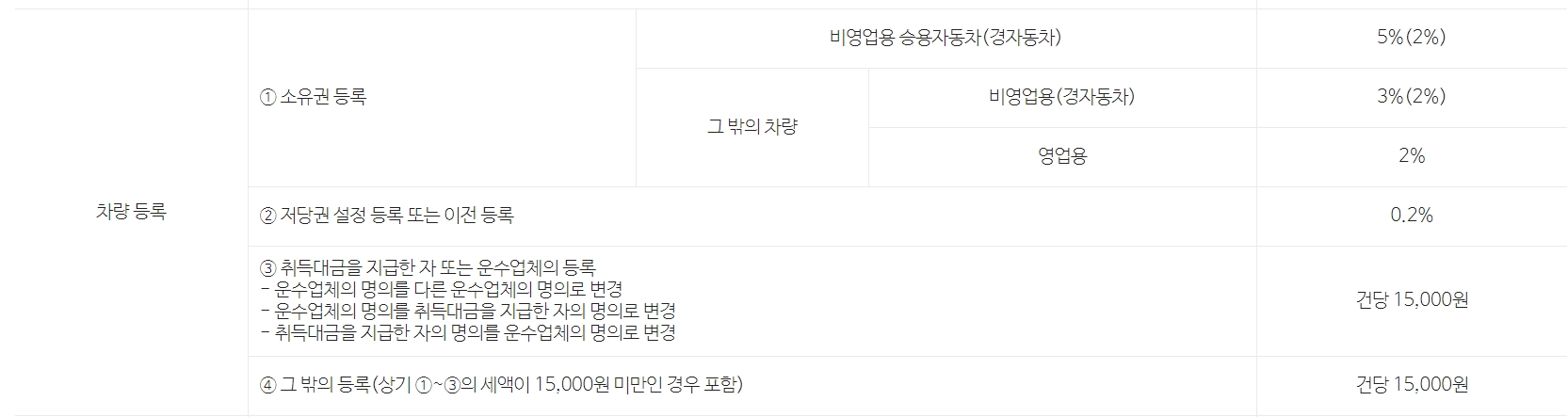등록 및 면허 세율은 계산의 필수 부분입니다. 아래 유형에 따른 표준세율을 확인하시기 바랍니다.