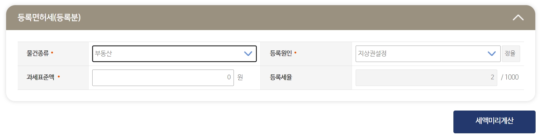 등록면허세를 납부하기 전에 미리 알고 있는 정보를 입력하고 계산해 보시기 바랍니다.