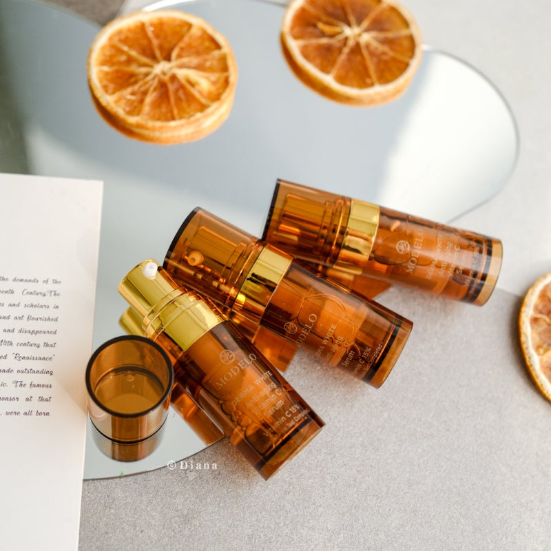 모델로 비타민 화장품이 유명한 이유는 사용하기 전에 비타민C를 폭발시켜 가장 신선하게 사용할 수 있기 때문입니다. 비타민C는 갈변하기 쉬운 성분이라고 합니다. 그래서 모델로서 세럼은 비타민과 용액을 분리해서 변질을 예방했습니다. 사용 직전 순수 비타민을 폭발시켜 사용할 수 있는 분리형 용기이기 때문에 가장 신선하게 사용할 수 있는 비타민C 세럼이라는 점이 마음에 들었습니다.